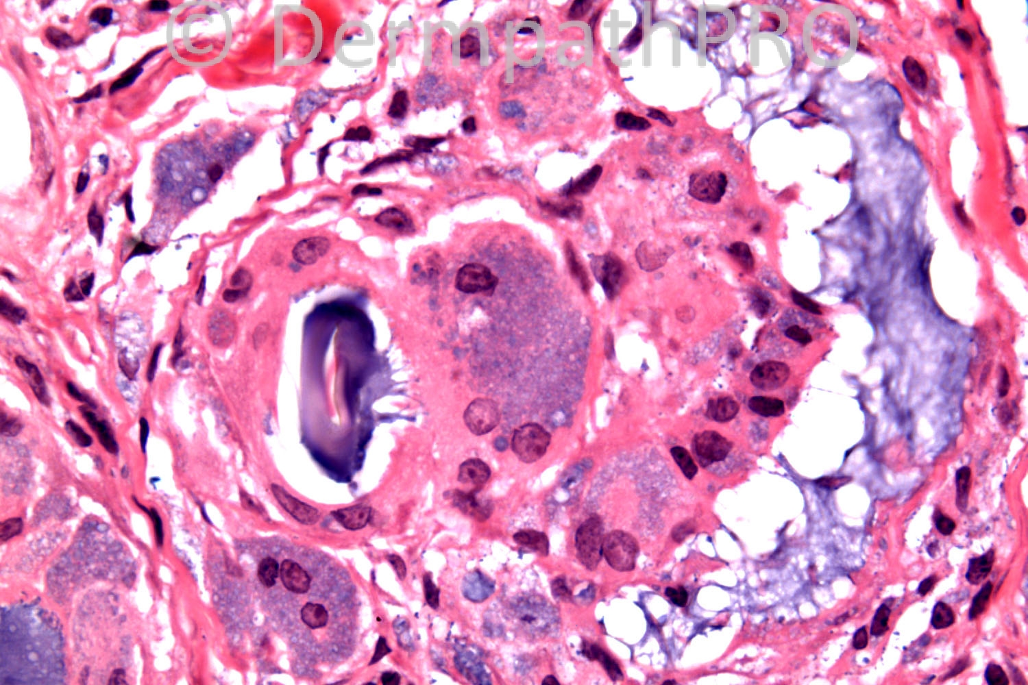 This is reaction to filler.there is a recent review by dr requena is very helpful to know the histpath of each materials used in the fillers.