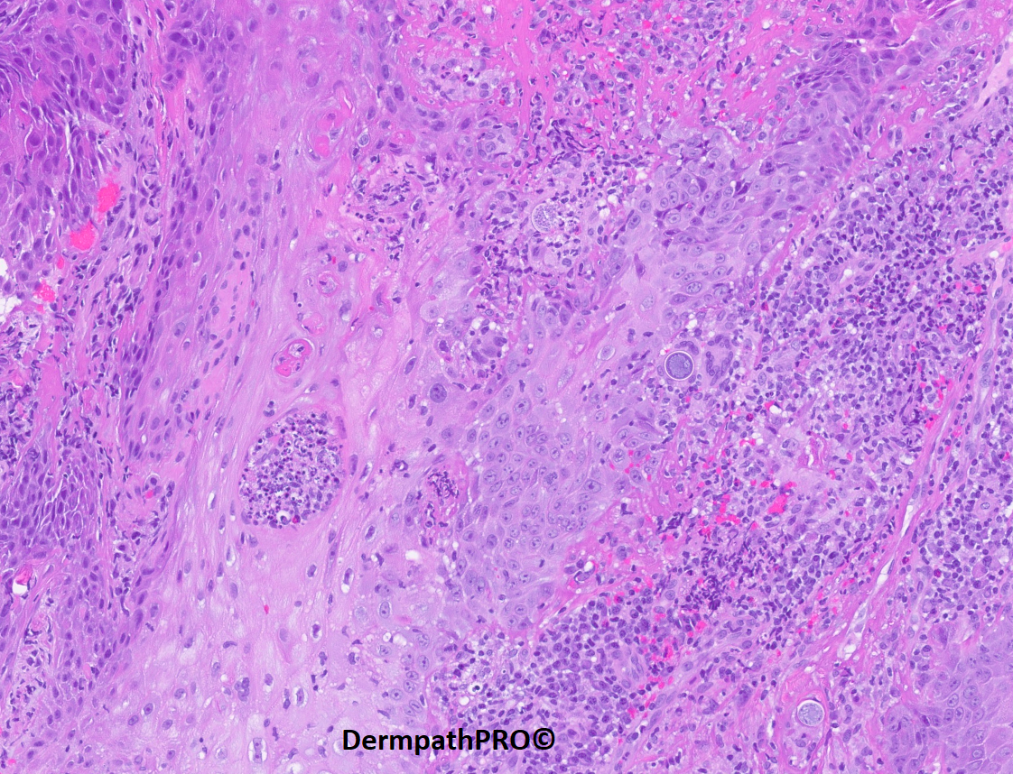 51 year-old male who has been developing large crusted ulcerative lesions starting on wrists, later spreading to the chest. Patient recalls cleaning a very dirty porch some time prior to developing these.